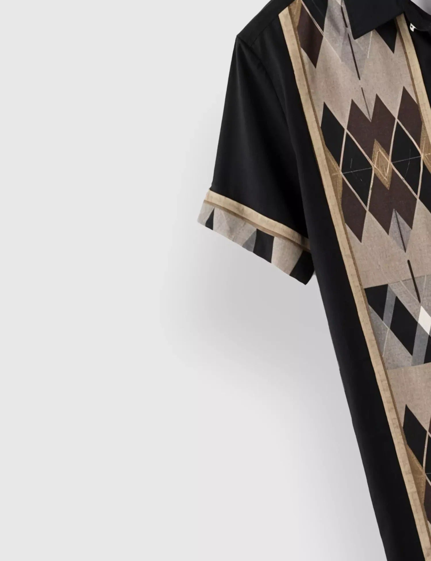 Men’s Geometric Print Short Sleeve Shirt | Casual Button-Down Retro Style Shirt